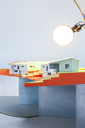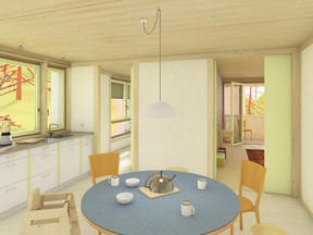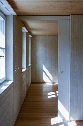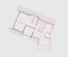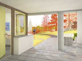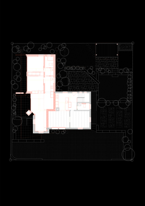 Die starre Struktur löst sich zunehmend auf - die Kammergrundrisse werden zu fliessenden Raumsequenzen und öffnen sich zum Garten.