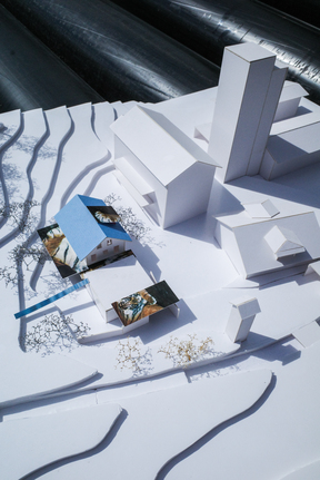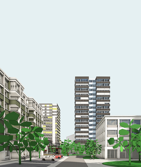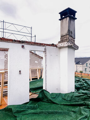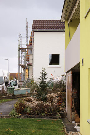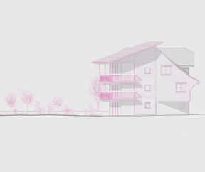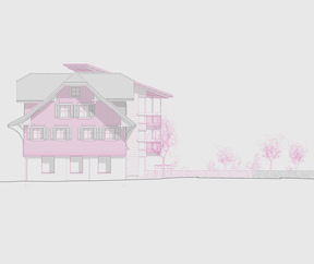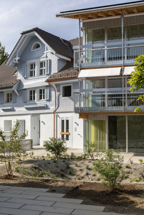 Die Geschichte des Lindengartens geht weiter; im dreigeschossigen Wohn- und Geschäftshaus entstehen vier Kleinwohnungen und ein Gewerberaum im Erdgeschoss. Der turmartige Anbau zum Garten überschreibt die beiden zeichenhaften Türmchen, mit denen sich das Haus am früheren Marktplatz präsentierte.